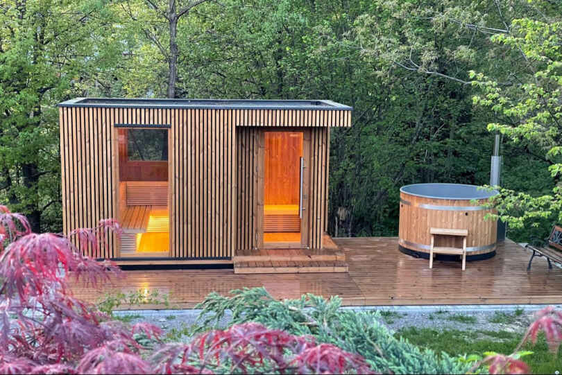 3-4人正方形遠赤外線屋外サウナ室防錆木材サウナ
